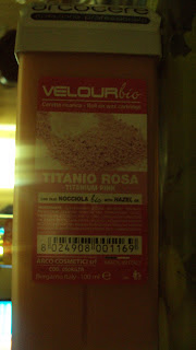 Una cera all'arancia e una al titanio rosa.. vi assicuro che dopo non ho dovuto mettere ne crema per profumare le mie gambe ne per detergere anche perchè mi ha inviato questo splendido olio..alla fragolaaaa!!!